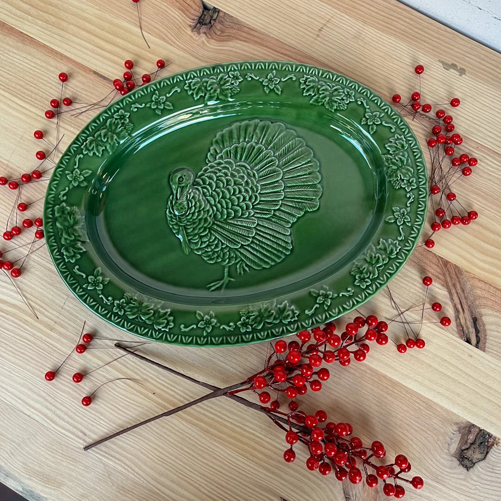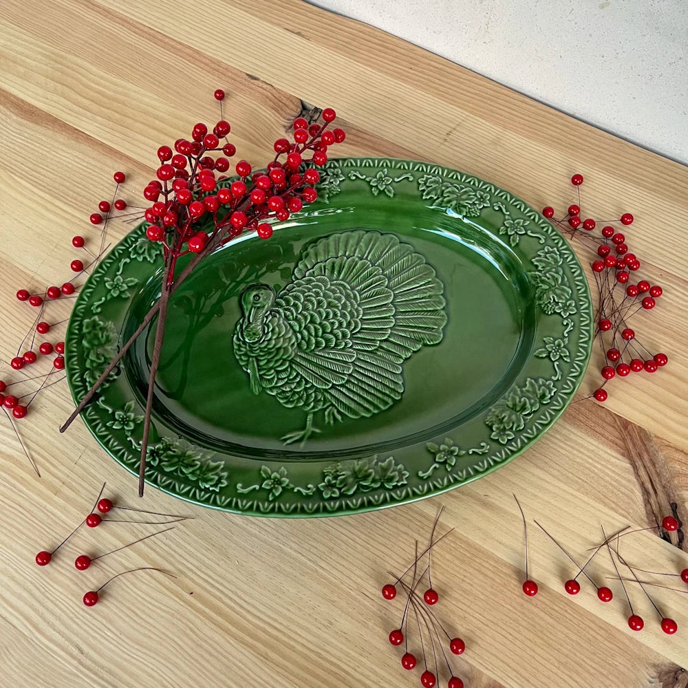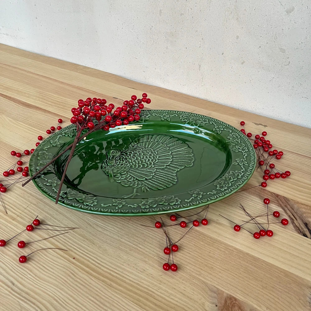 Fuente con pavo verde